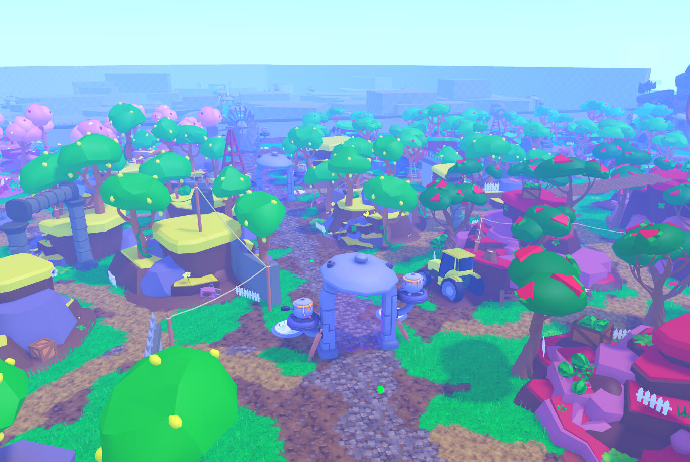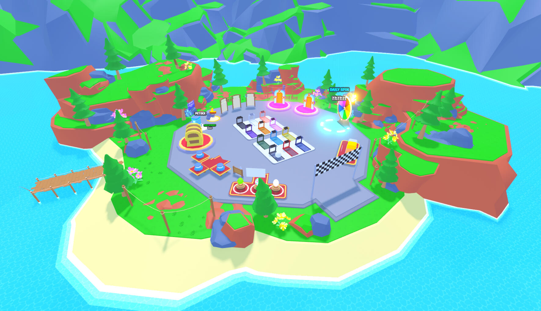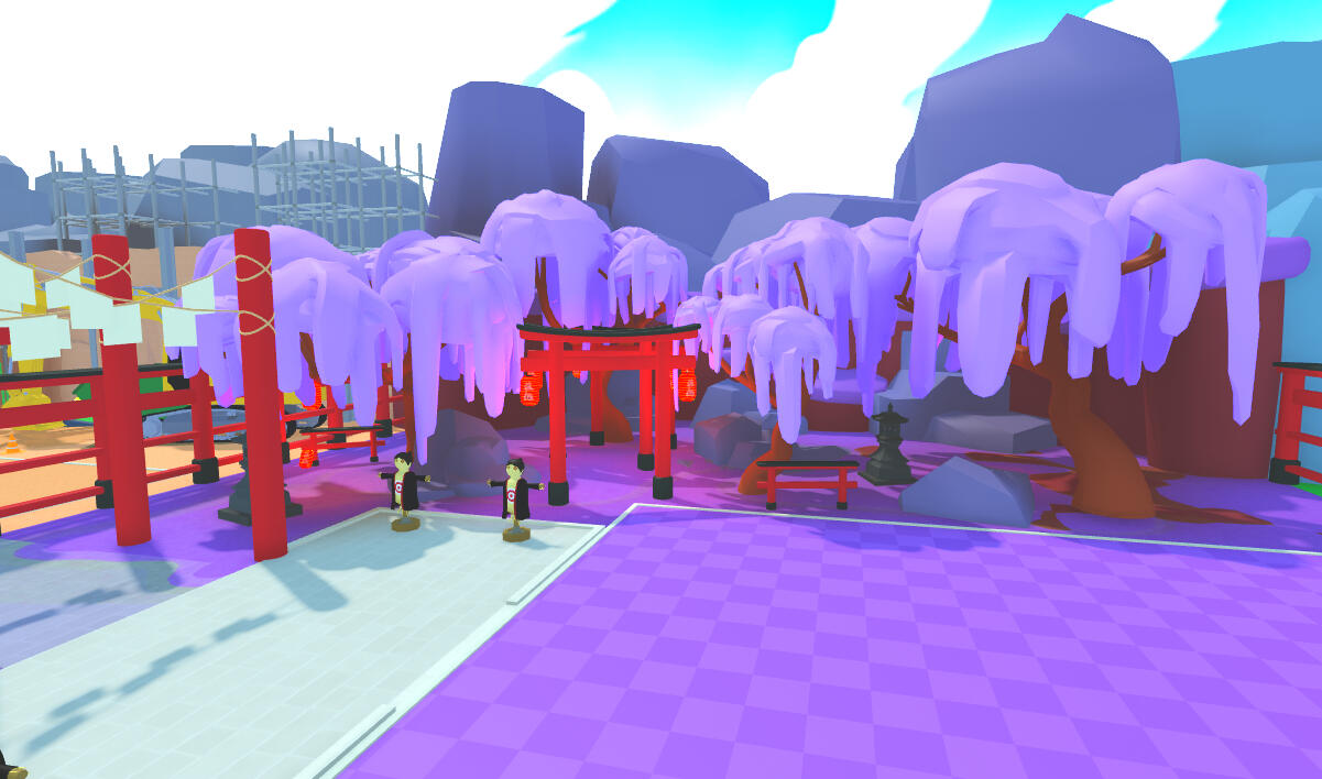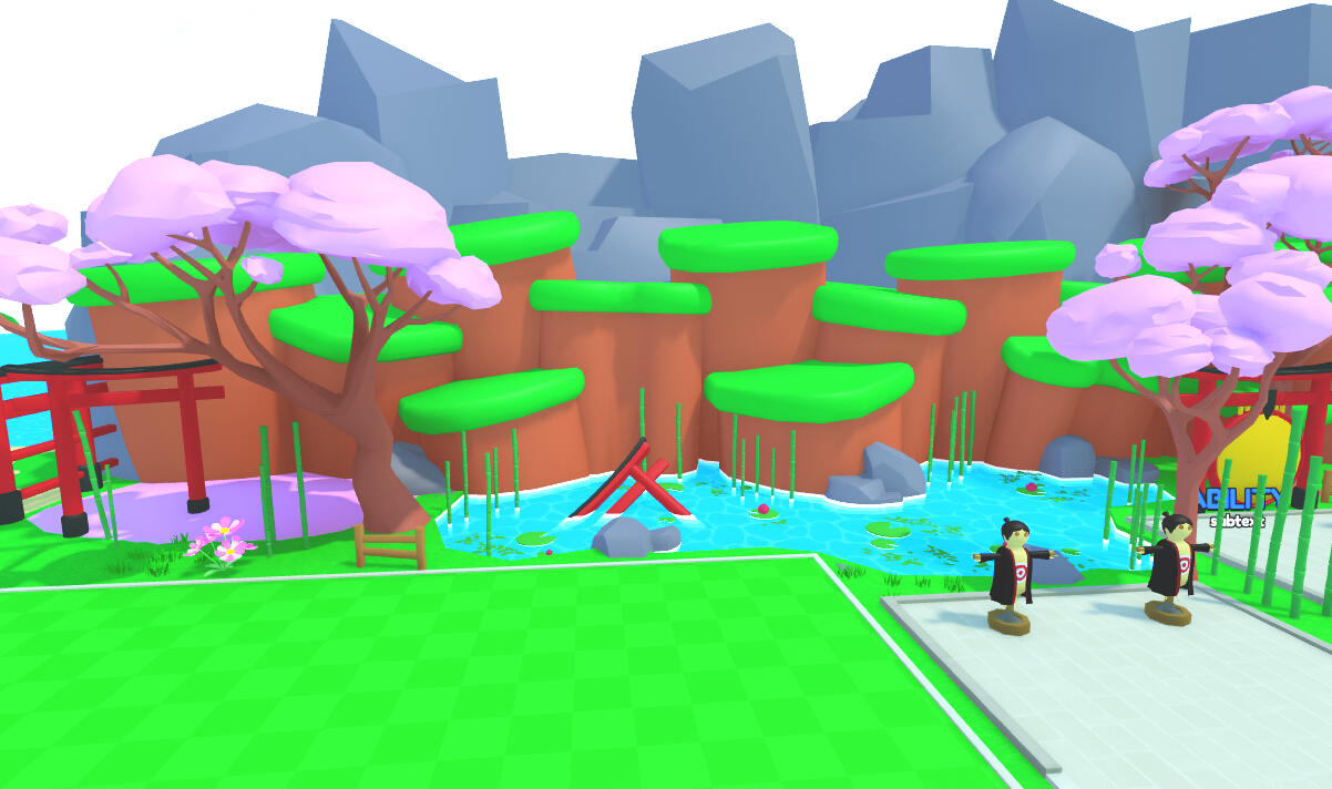 For this commission I made 8 zones based on different animes. The game is set up in a pet simulator layout, low poly style.
