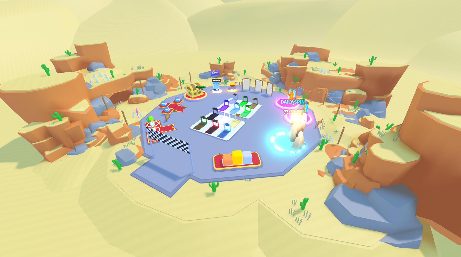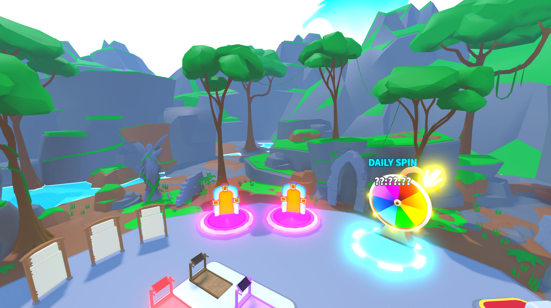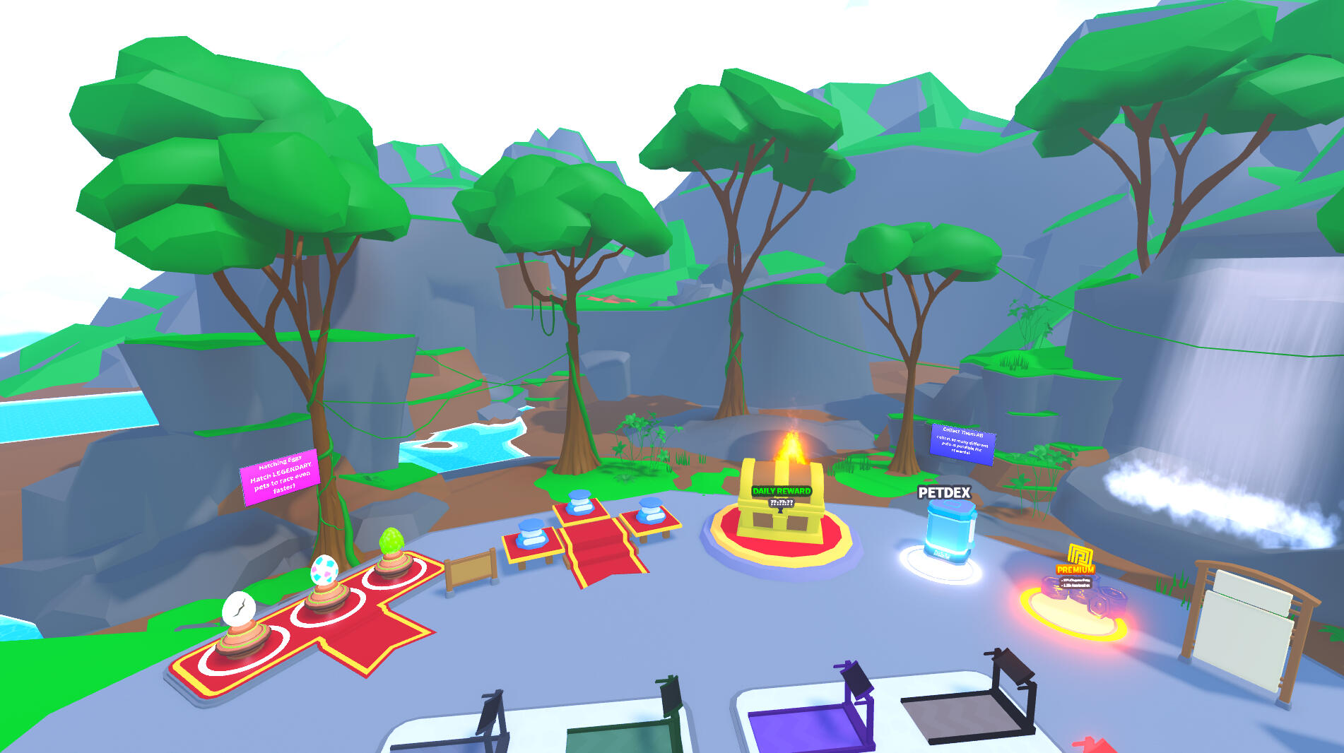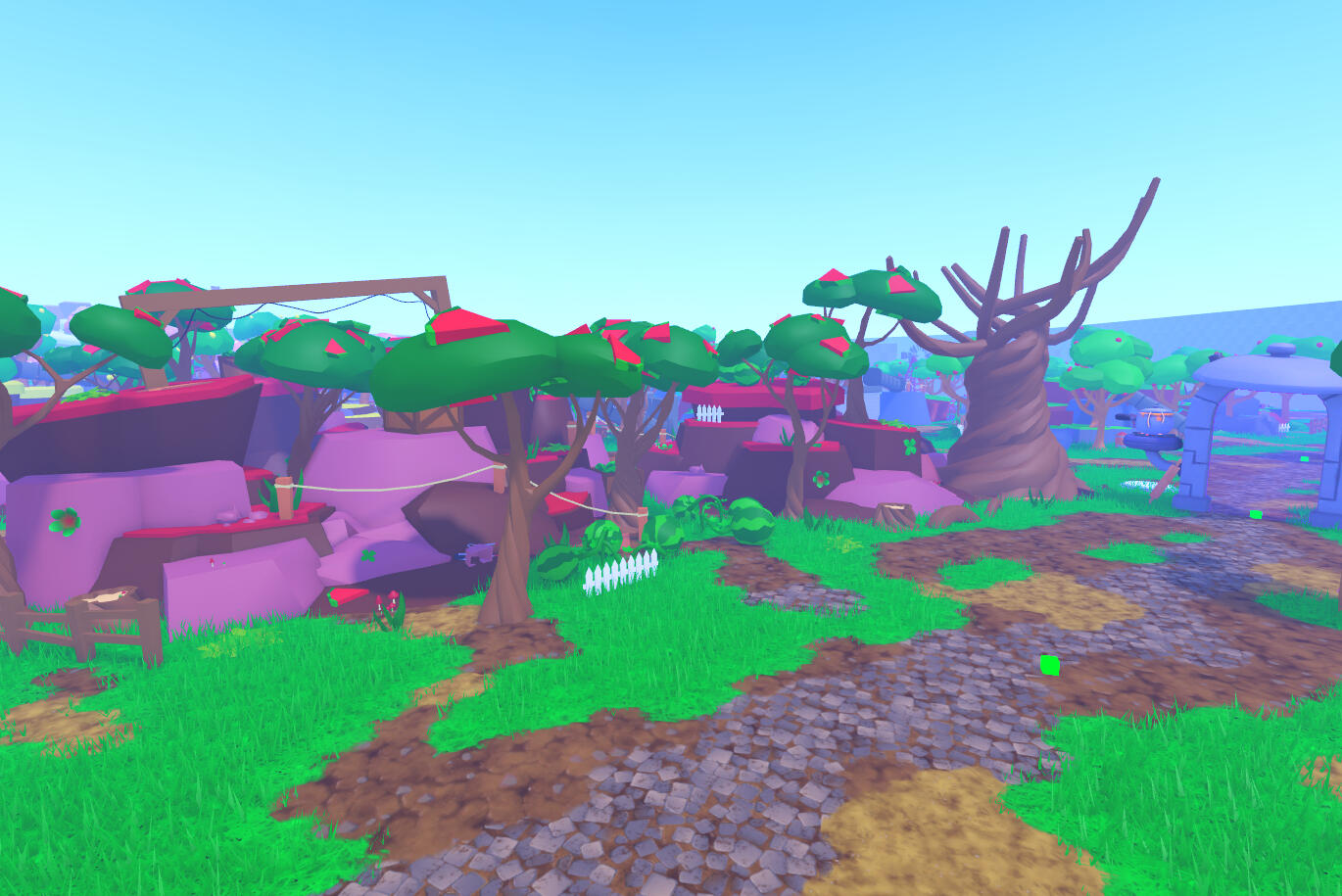 For this commission I made 8 zones based on different animes. The game is set up in a pet simulator layout, low poly style.